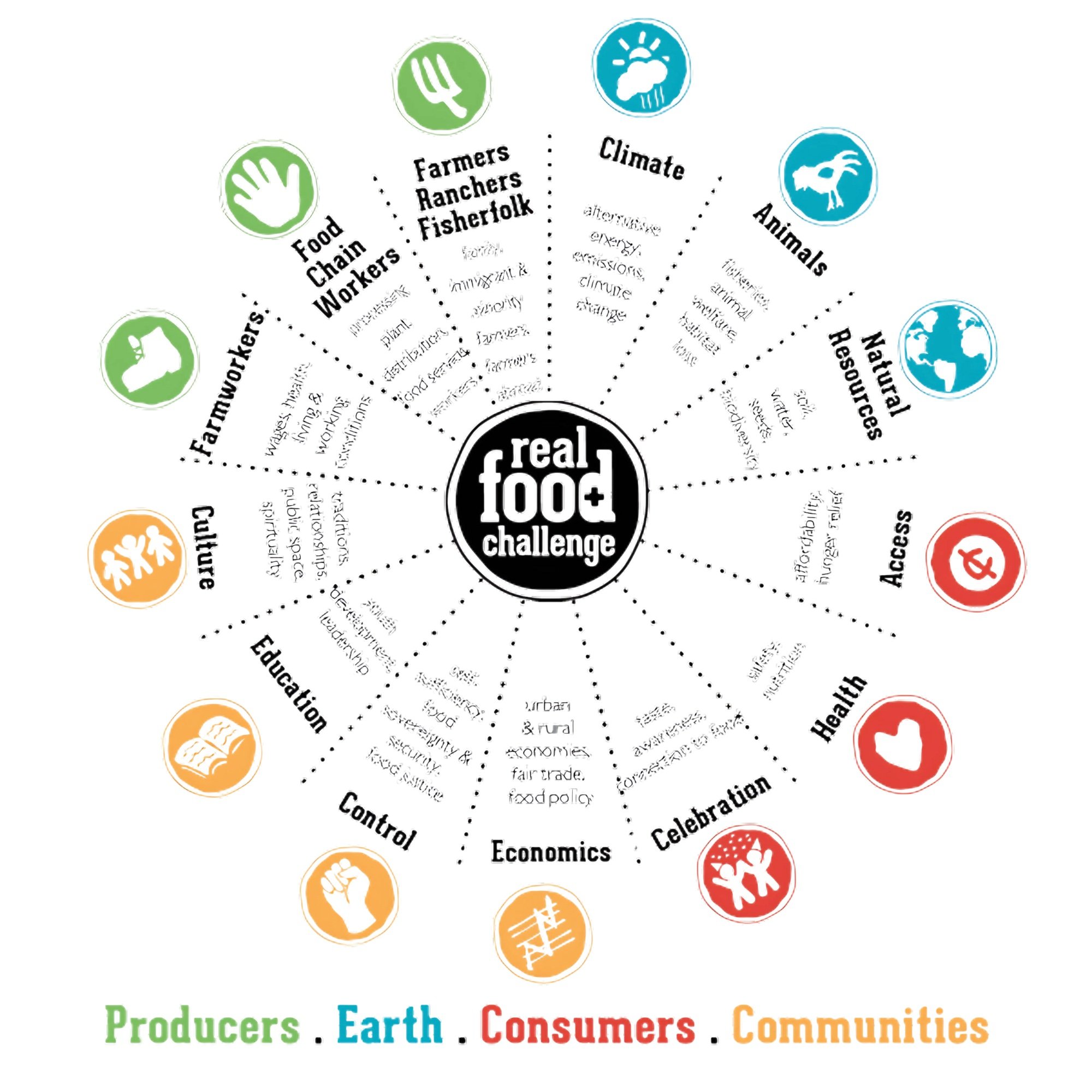 “The intersectionality of food systems — the impact on farm worker rights …, how animal rights and plant-forward eating fits into it all, the environmental impacts, and more; this is why I love the RFC real food calculator— it captures the main elements important in food justice work…”